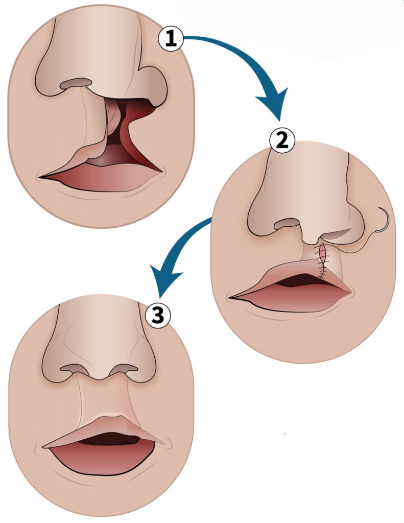 - Cleft Lip – A gap in the upper lip that can range from a small notch to a large opening extending to the nose.